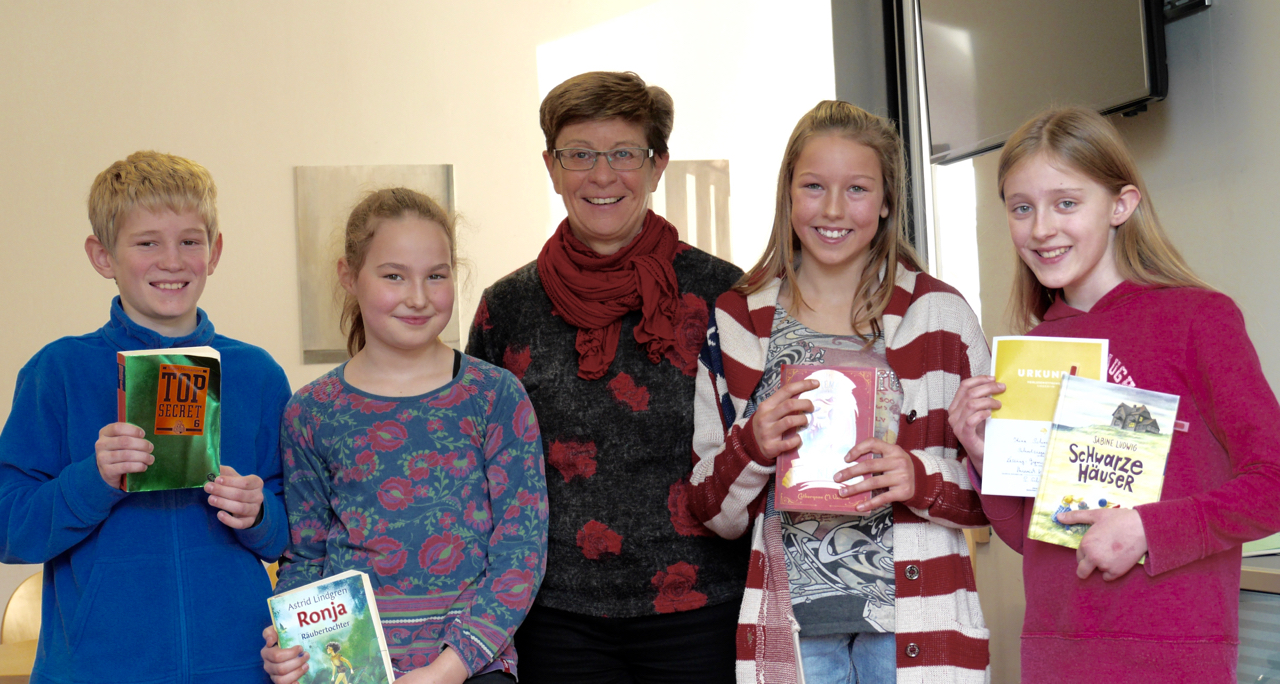 Am 07.12.2015 wurde der Vorlesewettbewerb der 6. Klassen am Lessing-Gymnasium entschieden. Unter den Klassenbesten - Jasmin Füchtner (6a), Johannes Kistner (6b), Kira Schröter (6c), Aenne Hartmann (6d) - konnte Frau Schatte Kira Schröter zu ihrer Wahl als Schulsiegerin gratulieren.