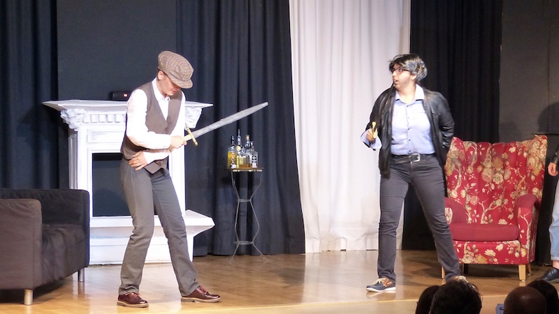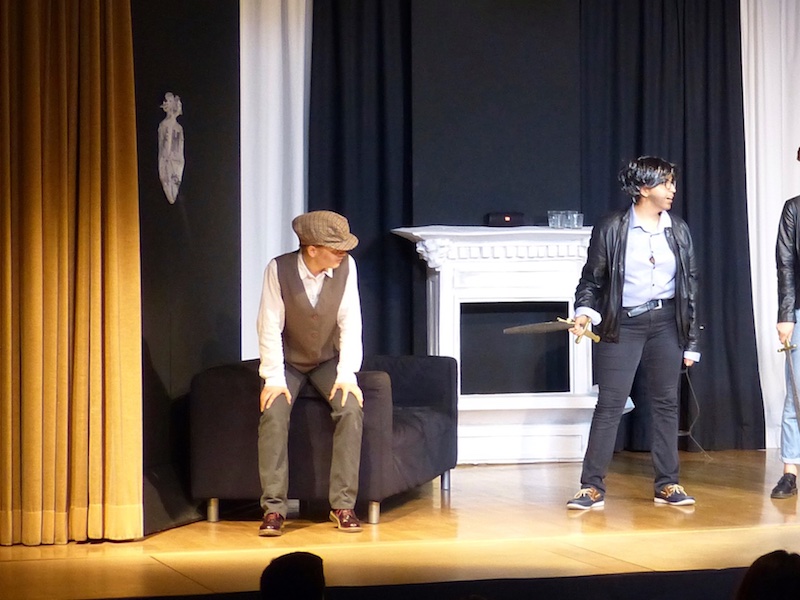 Neben den erfahrenen Schauspielerinnen der diesjährigen Abschlussklasse überzeugten Schülerinnen und Schüler der Jahrgangsstufe 11 ebenso sehr wie die Theaterneulinge aus der neunten Klasse. Spielfreudig zeigten sie ihr Können in Dialogen und Einzelszenen, beim Streiten, Verhören, Flirten, "richtigen" Sterben und im waghalsigen Schwertkampf.