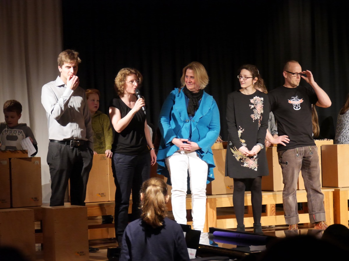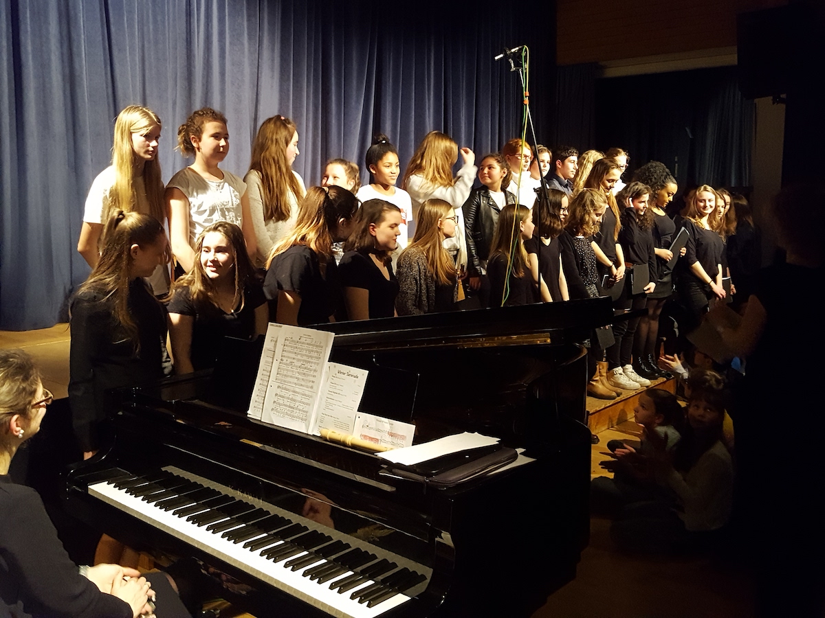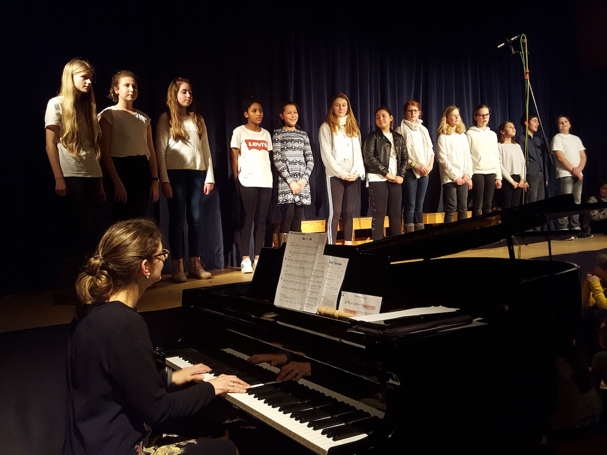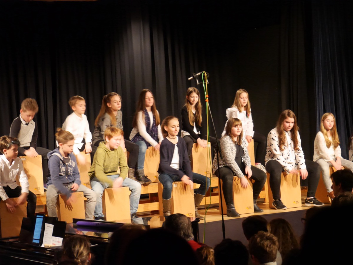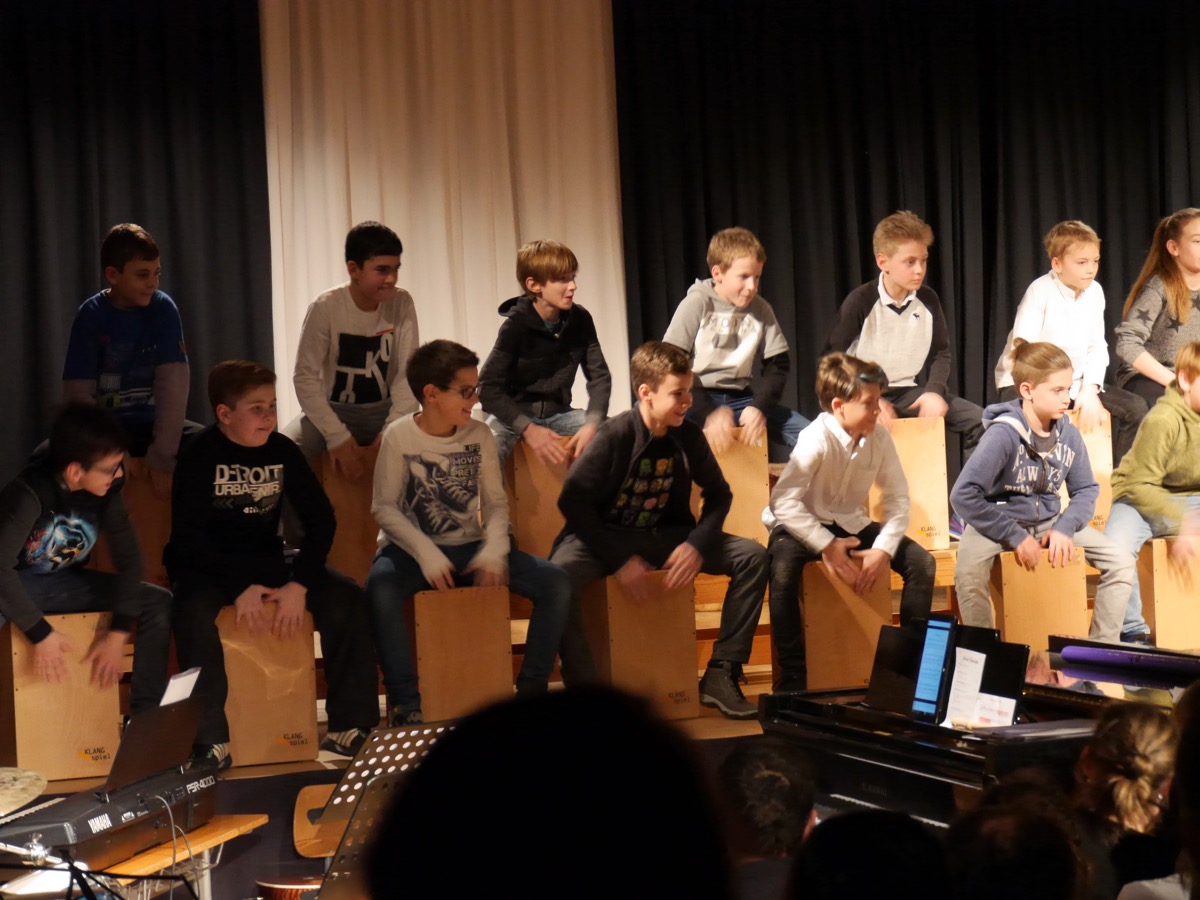 Dieser Einladung waren viele Interessierte gefolgt, so dass die Aula der Schule an die Grenzen ihrer Aufnahmekapazität gelangte. Die Neugierde selbst indes wurde überaus reich belohnt. In wechselnden Gruppierungen führten Konzertierende aller Altersgruppen auf unterschiedlichen Wegen durch Harmonien und Rhythmen verschiedenster Stilrichtungen. Von Vivaldi bis Sting, von Bearbeitungen klassischer Vorlagen über Kinderlieder bis zu Musical-Melodien und Rock-Stücken wurde mit Begeisterung und Freude musiziert, was sich unmittelbar auf das Publikum im Saal übertrug. Im Einzelnen engagierten sich hierbei: die Band (T. Gerstner), die Klassen 5c (K. Porzner) und 5d (T. Gerstner), die Trommel-Rhythmik-AG (Ch. Fritz), der Unterstufenchor (P. Bieringer) und der Rock-Pop-Jazz-Chor (C. Mark). So ließen sich mit einem kurzweiligen eineinhalbstündigen Programm die Zuhörer in einen ungemein lebendigen Abend geleiten, der mit seiner beschwingt vorgetragenen Musik einen lange anhaltenden Nachklang erzeugte.