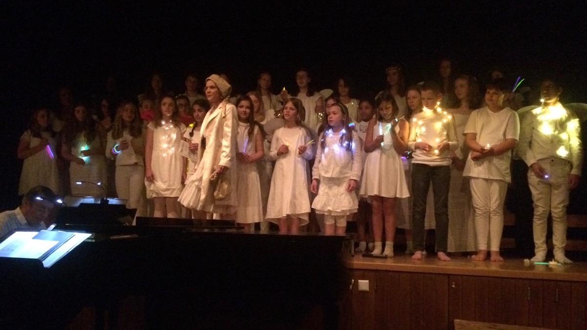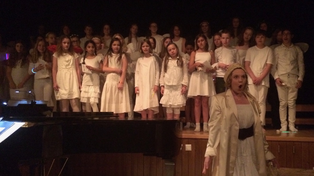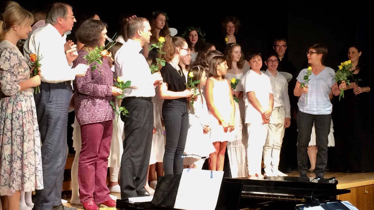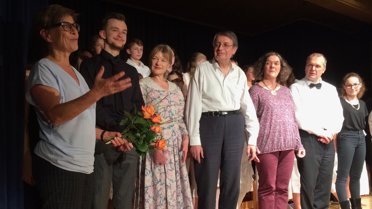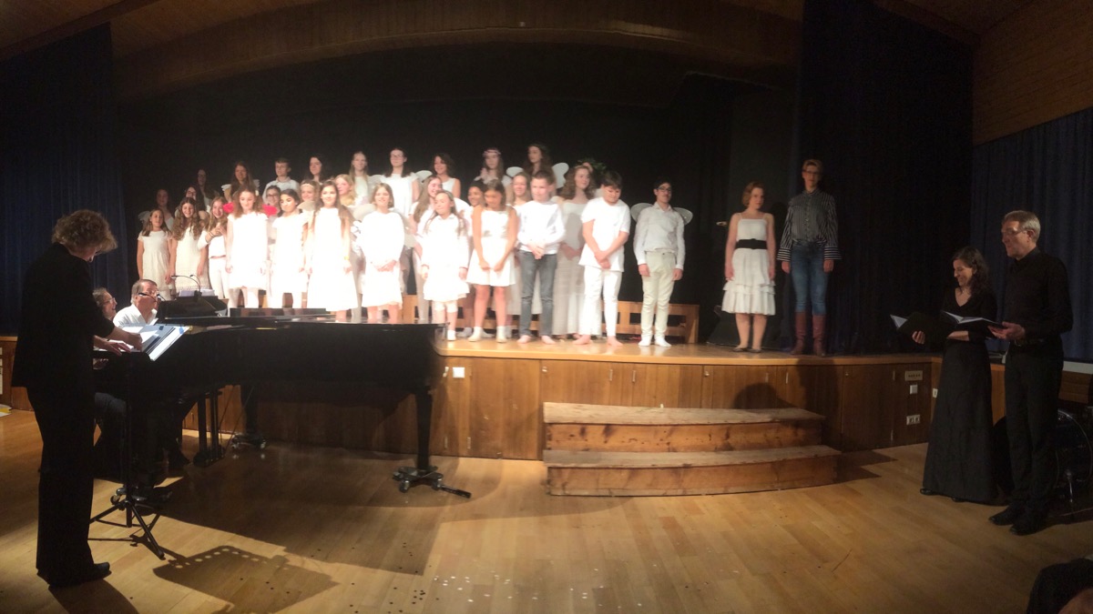 Bunt und vielfältig war das Programm, durch das originell und unterhaltsam moderierend sowie am Flügel begleitend der Initiator des Abends führte. Zur Unterstützung und Umsetzung versammelte sich eine ganze Schar an Musikerinnen und Musikern – die Liste der Mitwirkenden war beeindruckend. Ihnen gelang, an einer Schule, ein wahrlich großer Musikabend, der in unterschiedlich tönenden Varianten und Formationen des Zusammenspiels von Stimmen und Instrumenten lange nachklang – ernsthaft, anrührend, kämpferisch, lustig, fulminant oder auch nur verträumt. So ist allen Beteiligten zu danken für ein wunderbares Konzert, das sich harmonisch in den Reigen der Jubiläumsfeierlichkeiten einfügte.