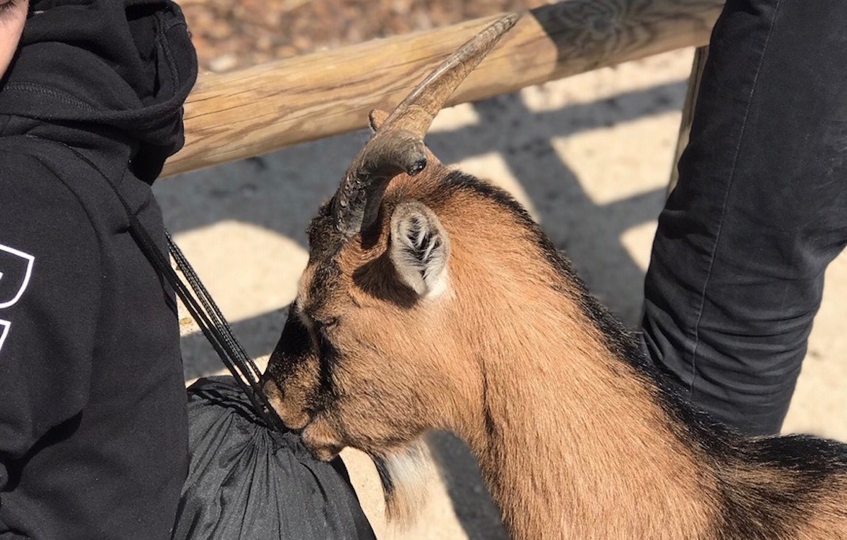 Bei dem Streichelzoo mit Ziegen musste wir auf unsere Flyer (und offensichtlicht Sportbeutel) aufpassen, da sich diese für die Ziegen als unwiderstehlich herausstellten.