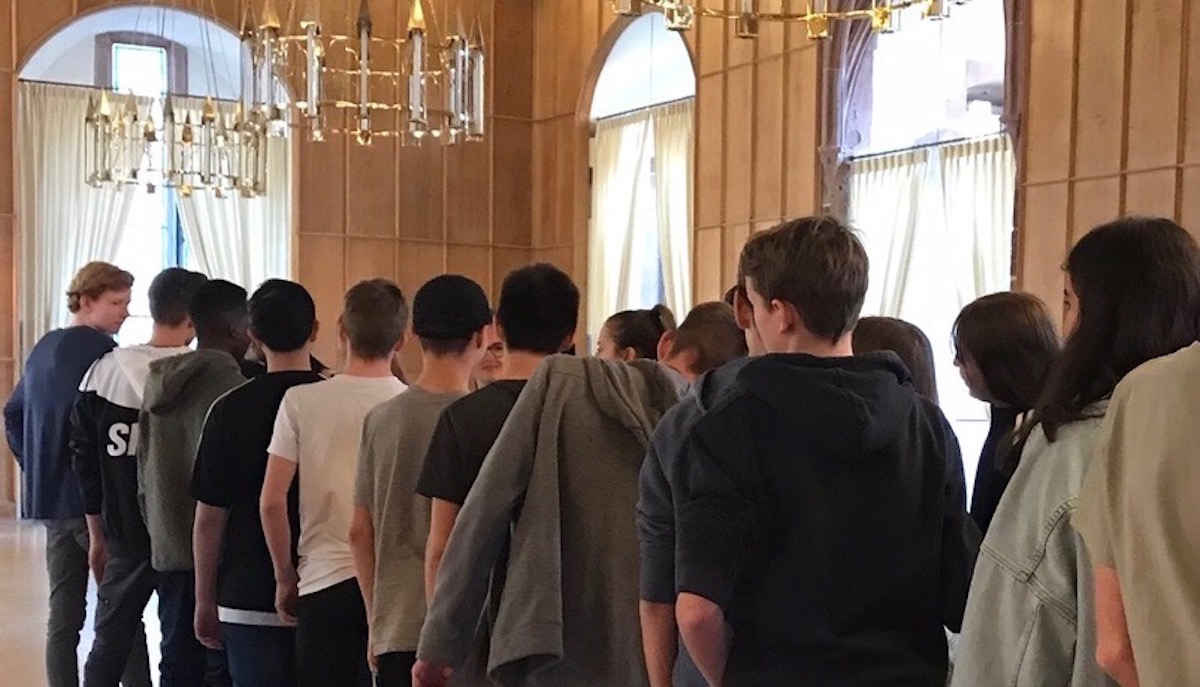 Es war Aufreihen angesagt: nicht nur lernten wir viel über die Geschichte des Schlosses und ihren Bewohnern um das 17. und 18. Jahrhundert, man brachte uns auch praktisch bei, wie man bei damaligen Hochzeiten tanzte, was aber mehr Verwirrung als Tanz bei uns darstellte.