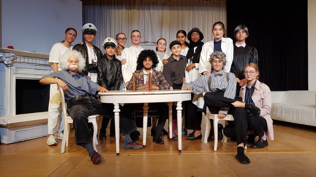 Am Donnerstag, 17. Oktober und am Montag, 21. Oktober führte die Theatergruppe der Mittel- und Oberstufe unter der Leitung von Frau Neumann Friedrich Dürrenmatts Tragikomödie Die Physiker (v. 1961) in der Aula auf. Eine tolle Inszenierung! Näheres kann man im Folgenden erfahren.