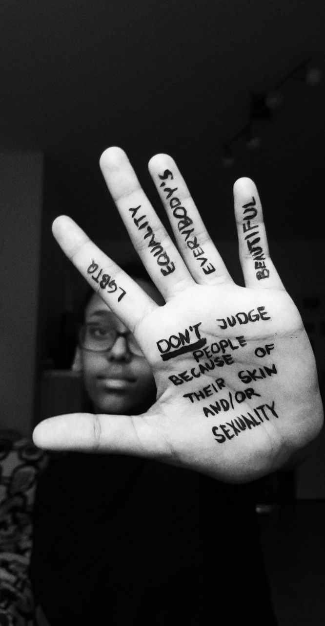 Im Rahmen einer offenen Aufgabenstellung haben Schülerinnen und Schüler im Online-Unterricht mit selbst gemachten Fotos gegen Rassismus und Diskriminierung Stellung bezogen. Vielen Dank für Eure ausdrucksvollen Fotos! Die Fotos finden Sie im Folgenden.