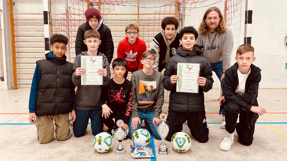 Am Donnerstag, den 16.02.23 konnte die Auswahl der achten Klassen des Lessing-Gymnasiums einen sensationellen Doppelerfolg feiern. Die Schüler gewannen nicht nur das stark besetzte Turnier, sondern konnten auch noch den Fairness-Pokal mit nach Hause nehmen. Diese Leistung ist in der bisherigen Historie der Stadtmeisterschaft einzigartig. Das Gewinnerteam sehen Sie im Folgenden.