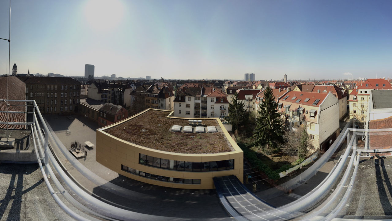 Auf dem Dach des Lessing-Gymnasiums befindet sich eine Wetterstation, die neben den Wetterdaten Temperatur, Luftfeuchtigkeit, Windstärke, Windrichtung und Luftdruck auch die Einstrahlung der Sonne auf einen Quadratmeter Oberfläche in Watt misst. Am Verlauf der Kurve können Sie gut erkennen, in welchem Zeitraum die partielle Sonnenfinsternis stattfand.