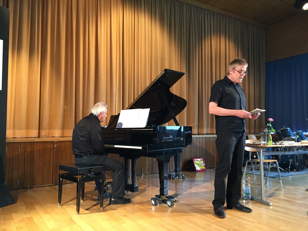 „Könnt ich nur do sei wolle, wo ich bin!“ - Badische und musikalische Bagatellen: Unter diesem Titel betraten am Mittwoch, 20. Mai 2015, Werner Puschner und Ronald Dunke die Bühne der Aula im Lessing-Gymnasium. Dort verweilten sie über zwei Stunden und mit ihnen ein Publikum, das die beiden Künstler am Schluss gar nicht mehr gehen lassen wollte.