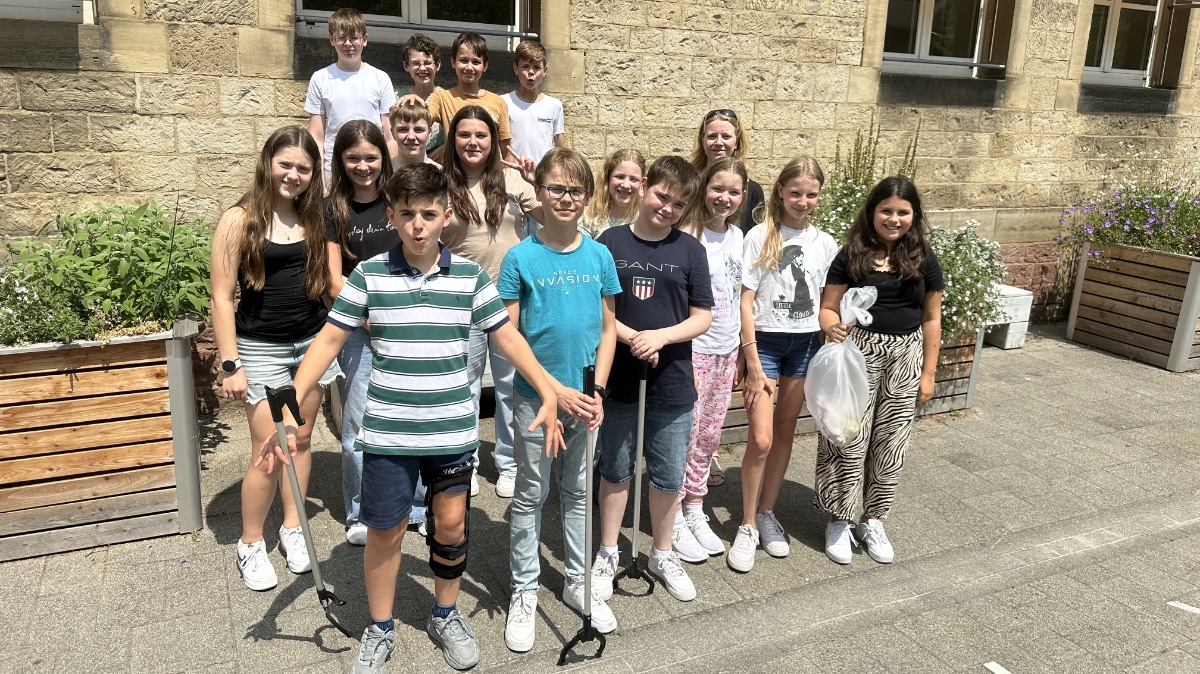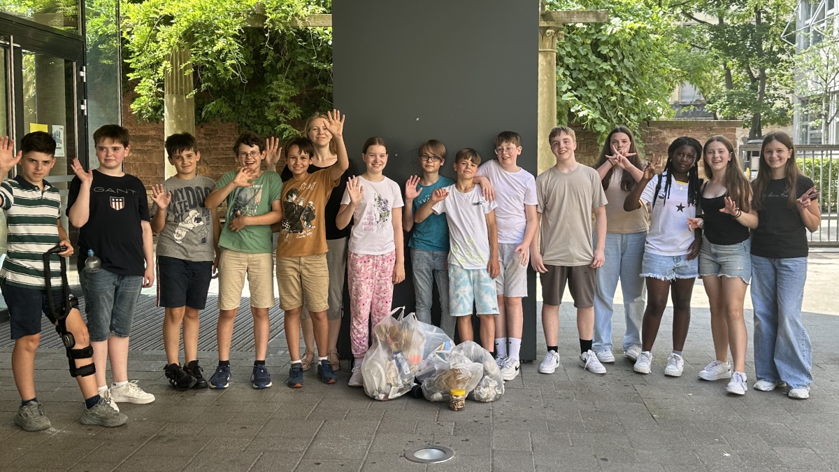 Am 28.6. stellten wir im Unterricht einigen Schülerinnen und Schülern unserer Partnerschule in Nancy per Videokonferenz unsere Klasse und unser Umweltprojekt vor. Auch wir erfuhren mehr über das Umweltengagement am College de la Craffe. Nach dem Unterricht fand ein gemeinsames Picknick statt, das möglichst umweltfreundlich, z.B. ohne Plastik, sein sollte. Schließlich liefen wir mit Zangen und Müllbeuteln ausgestattet bei warmen Temperaturen Richtung Günther-Klotz-Anlage und sammelten Müll bei unseren Fahrradständern, auf dem Gehweg und im Park ein. Am Ende wurde uns bewusst, wie viel Müll und z.B. auch Zigarettenstummel unachtsam in der Natur landen. Auch unsere Austauschschülerinnen und -schüler sammelten an einem Aktionstag fleißig Müll ein, sodass wir unser Projekt gemeinsam erfolgreich abschließen konnten.