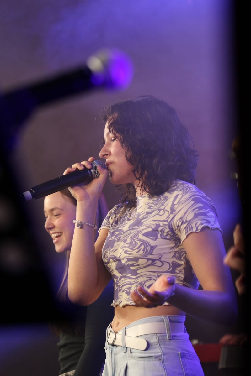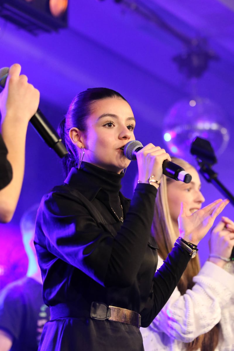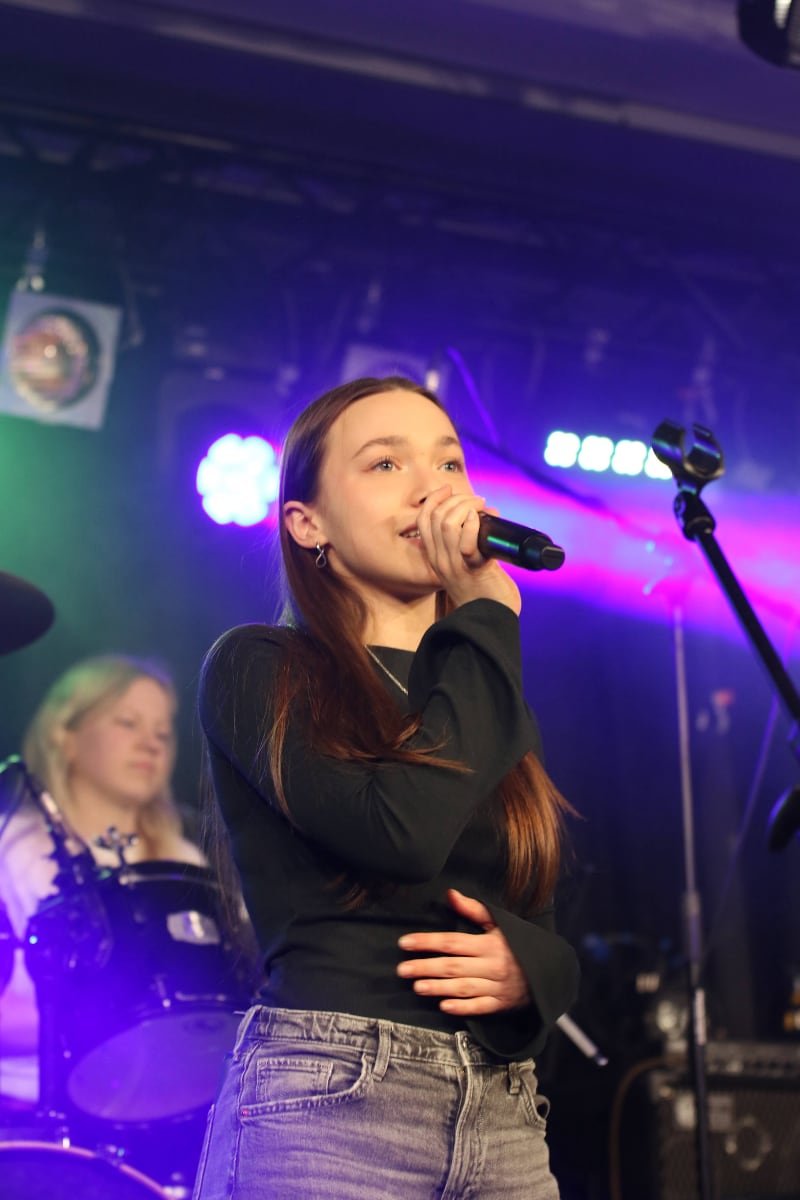 In der Mensa des Fichte-Gymnasiums fand am Freitag, 28.3.25, der diesjährige Bandabend statt. Den Abend eröffnete um 18:30 Uhr die MPG-Bigband. Danach stand „Staged Chaos“ vom Dominikus-Gymnasium auf der Bühne, mit nur drei Musikerinnen, die aber dennoch oder gerade deswegen Eindruck machten.