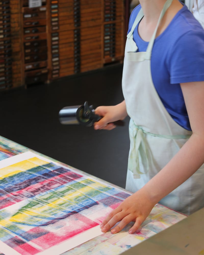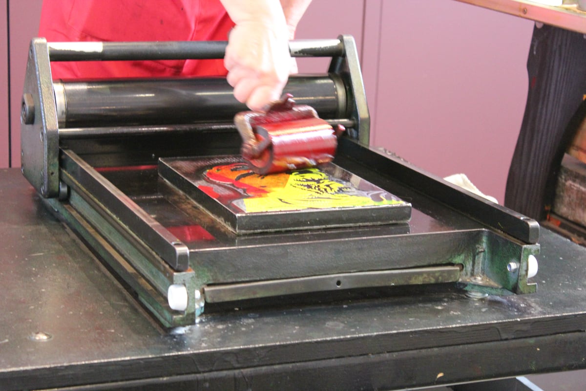 Am Mittwochmorgen fuhren wir mit dem Bus zum Naturhistorischen Museum, denn in dieses war gerade das Gutenberg-Museum umgezogen. Das eigentliche Gebäude des Gutenberg-Museums war gerade auf Grund einer Renovierung geschlossen. Am Gutenberg-Museum teilten wir uns in zwei Gruppen auf. Die eine hatte vor, zuerst einen Druckworkshop im sogenannten „Druckladen“ des Museums zu machen, die andere durfte zuerst eine Stadtrallye auf den Spuren von Johannes Gutenberg machen. Bei dem Druckworkshop wurden mit dem Hochdruckverfahren und einer einfachen Presse farbige Bilder und Wörter gedruckt. Es entstanden schöne Werke, die wir später abholen würden.